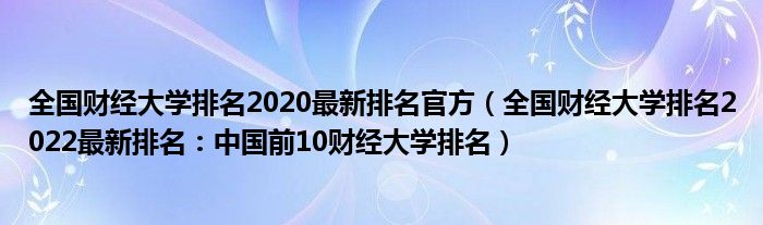 大家好,綜合小編來為大家解答以上問題。全國財經大學排名2020最新排名官方,全國財經大學排名2022最新排名:中國前10財經大學排名很多人還不知道,現在讓我們一起來看看吧!