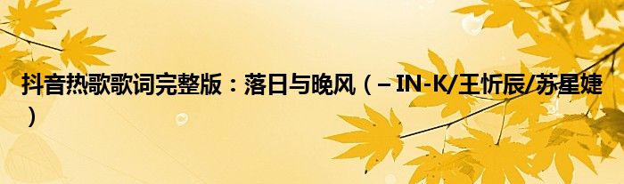 大家好,綜合小編來為大家解答以上問題。抖音熱歌歌詞完整版:落日與晚風,– IN-K/王忻辰/蘇星婕很多人還不知道,現在讓我們一起來看看吧!