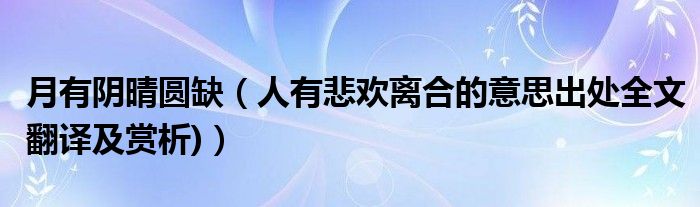 大家好,綜合小編來為大家解答以上問題。月有陰晴圓缺,人有悲歡離合的意思出處全文翻譯及賞析)很多人還不知道,現在讓我們一起來看看吧!