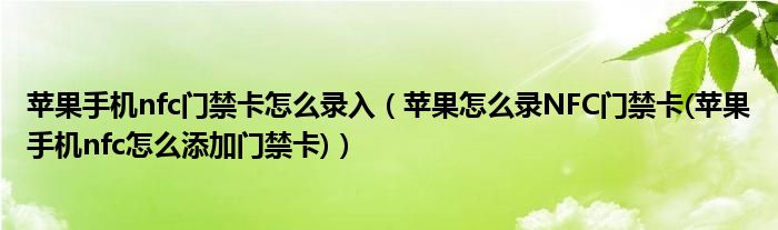 大家好,綜合小編來為大家解答以上問題。蘋果手機nfc門禁卡怎么錄入,蘋果怎么錄NFC門禁卡(蘋果手機nfc怎么添加門禁卡)很多人還不知道,現在讓我們一起來看看吧!