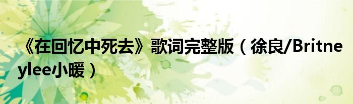 大家好,綜合小編來為大家解答以上問題。《在回憶中死去》歌詞完整版,徐良/Britneylee小暖很多人還不知道,現在讓我們一起來看看吧!