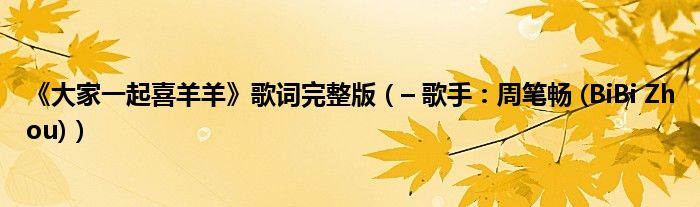 大家好,綜合小編來為大家解答以上問題。《大家一起喜羊羊》歌詞完整版,– 歌手:周筆暢 (BiBi Zhou)很多人還不知道,現(xiàn)在讓我們一起來看看吧!