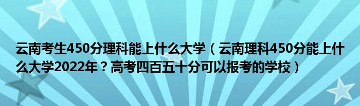 大家好,綜合小編來為大家解答以上問題。云南考生450分理科能上什么大學,云南理科450分能上什么大學2022年?高考四百五十分可以報考的學校很多人還不知道,現在讓我們一起來看看吧!