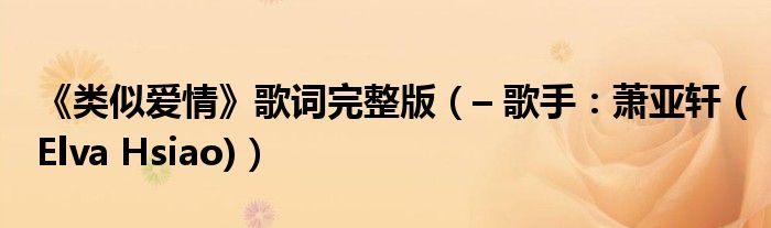 大家好,綜合小編來為大家解答以上問題?!额愃茞矍椤犯柙~完整版,– 歌手:蕭亞軒 (Elva Hsiao)很多人還不知道,現在讓我們一起來看看吧!