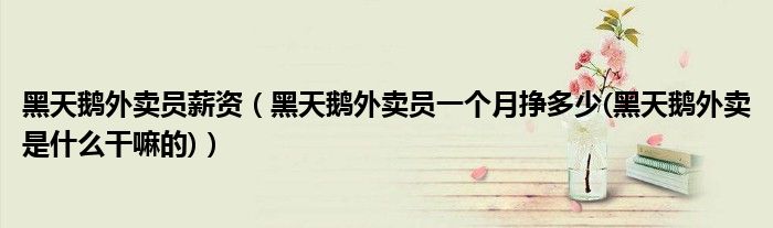大家好,綜合小編來為大家解答以上問題。黑天鵝外賣員薪資,黑天鵝外賣員一個月掙多少(黑天鵝外賣是什么干嘛的)很多人還不知道,現(xiàn)在讓我們一起來看看吧!