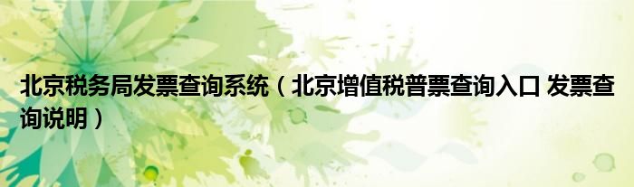大家好,綜合小編來為大家解答以上問題。北京稅務局發票查詢系統,北京增值稅普票查詢入口 發票查詢說明很多人還不知道,現在讓我們一起來看看吧!