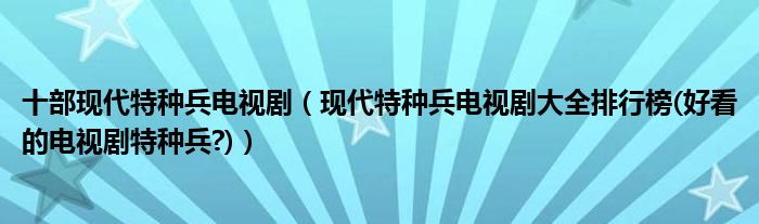 大家好,綜合小編來為大家解答以上問題。十部現代特種兵電視劇,現代特種兵電視劇大全排行榜(好看的電視劇特種兵?)很多人還不知道,現在讓我們一起來看看吧!