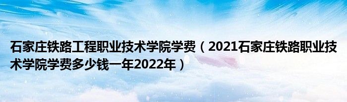 大家好,綜合小編來為大家解答以上問題。石家莊鐵路工程職業技術學院學費,2021石家莊鐵路職業技術學院學費多少錢一年2022年很多人還不知道,現在讓我們一起來看看吧!