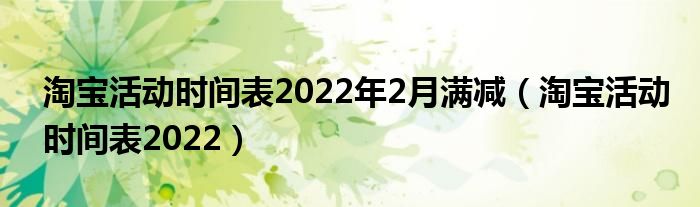 大家好,綜合小編來為大家解答以上問題。淘寶活動時間表2022年2月滿減,淘寶活動時間表2022很多人還不知道,現(xiàn)在讓我們一起來看看吧!