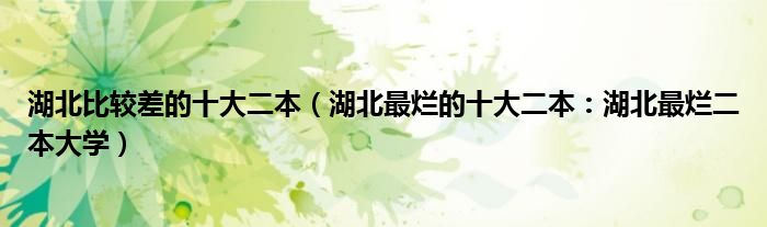 大家好,綜合小編來為大家解答以上問題。湖北比較差的十大二本,湖北最爛的十大二本:湖北最爛二本大學很多人還不知道,現在讓我們一起來看看吧!