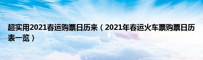 大家好,綜合小編來為大家解答以上問題。超實用2021春運購票日歷來,2021年春運火車票購票日歷表一覽很多人還不知道,現在讓我們一起來看看吧!