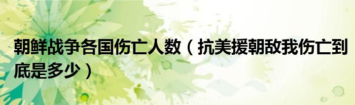 大家好,綜合小編來為大家解答以上問題。朝鮮戰(zhàn)爭各國傷亡人數(shù),抗美援朝敵我傷亡到底是多少很多人還不知道,現(xiàn)在讓我們一起來看看吧!