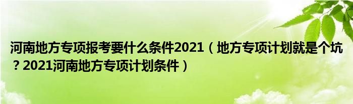 大家好,綜合小編來為大家解答以上問題。河南地方專項報考要什么條件2021,地方專項計劃就是個坑?2021河南地方專項計劃條件很多人還不知道,現在讓我們一起來看看吧!
