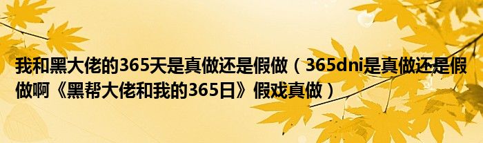 大家好,綜合小編來為大家解答以上問題。我和黑大佬的365天是真做還是假做,365dni是真做還是假做啊《黑幫大佬和我的365日》假戲真做很多人還不知道,現在讓我們一起來看看吧!