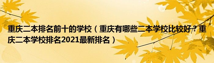 大家好,綜合小編來為大家解答以上問題。重慶二本排名前十的學(xué)校,重慶有哪些二本學(xué)校比較好?重慶二本學(xué)校排名2021最新排名很多人還不知道,現(xiàn)在讓我們一起來看看吧!