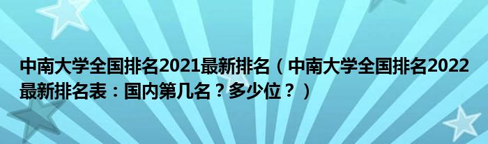 導(dǎo)讀 大家好,綜合小編來為大家解答以上問題。中南大學(xué)全國排名2021最新排名,中南大學(xué)全國排名2022最新排名表:國內(nèi)第幾名?多少位?很多人還不