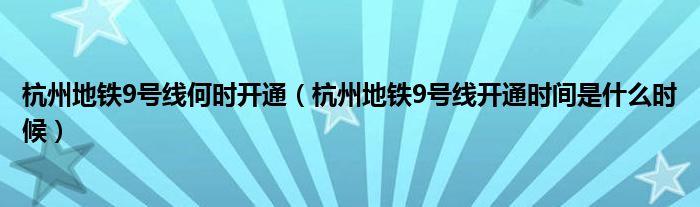 大家好,綜合小編來為大家解答以上問題。杭州地鐵9號線何時開通,杭州地鐵9號線開通時間是什么時候很多人還不知道,現在讓我們一起來看看吧!