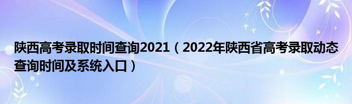大家好,綜合小編來為大家解答以上問題。陜西高考錄取時(shí)間查詢2021,2022年陜西省高考錄取動(dòng)態(tài)查詢時(shí)間及系統(tǒng)入口很多人還不知道,現(xiàn)在讓我們一起來看看吧!