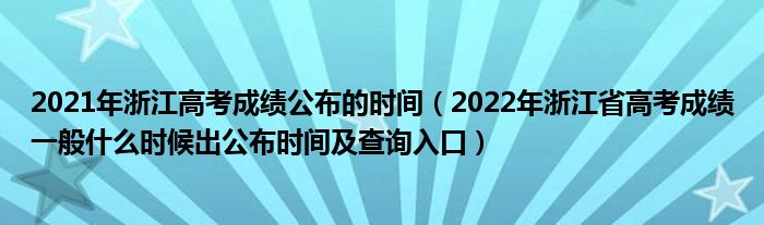 大家好,綜合小編來為大家解答以上問題。2021年浙江高考成績公布的時間,2022年浙江省高考成績一般什么時候出公布時間及查詢入口很多人還不知道,現在讓我們一起來看看吧!