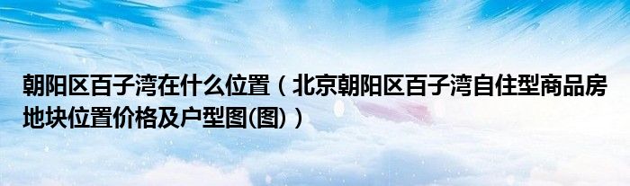 大家好,綜合小編來為大家解答以上問題。朝陽區百子灣在什么位置,北京朝陽區百子灣自住型商品房地塊位置價格及戶型圖(圖)很多人還不知道,現在讓我們一起來看看吧!