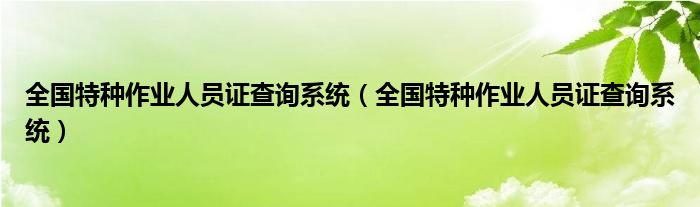 大家好,綜合小編來為大家解答以上問題。全國特種作業人員證查詢系統,全國特種作業人員證查詢系統很多人還不知道,現在讓我們一起來看看吧!