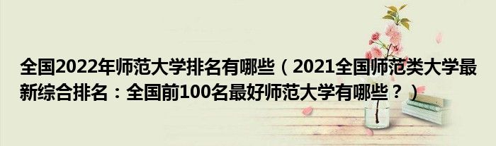 大家好,綜合小編來為大家解答以上問題。全國2022年師范大學排名有哪些,2021全國師范類大學最新綜合排名:全國前100名最好師范大學有哪些?很多人還不知道,現在讓我們一起來看看吧!