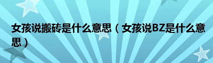 大家好,綜合小編來為大家解答以上問題。女孩說搬磚是什么意思,女孩說BZ是什么意思很多人還不知道,現在讓我們一起來看看吧!