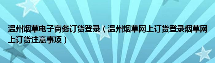 大家好,綜合小編來為大家解答以上問題。溫州煙草電子商務(wù)訂貨登錄,溫州煙草網(wǎng)上訂貨登錄煙草網(wǎng)上訂貨注意事項很多人還不知道,現(xiàn)在讓我們一起來看看吧!