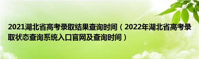 大家好,綜合小編來為大家解答以上問題。2021湖北省高考錄取結果查詢時間,2022年湖北省高考錄取狀態查詢系統入口官網及查詢時間很多人還不知道,現在讓我們一起來看看吧!