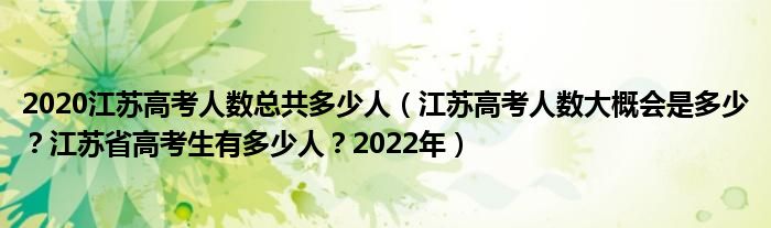 大家好,綜合小編來為大家解答以上問題。2020江蘇高考人數(shù)總共多少人,江蘇高考人數(shù)大概會(huì)是多少?江蘇省高考生有多少人?2022年很多人還不知道,現(xiàn)在讓我們一起來看看吧!
