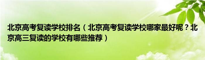 隨著高考政策的不斷改革,很多公辦學校不再接收高考復讀的學生。因此,學生在選擇資源方面非常有限。下面小編為大家整理了一份北京高考復讀學校排名。詳情如下,僅供參考: