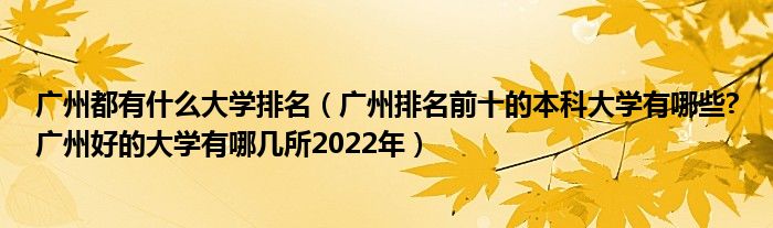 大家好,綜合小編來為大家解答以上問題。廣州都有什么大學排名,廣州排名前十的本科大學有哪些?廣州好的大學有哪幾所2022年很多人還不知道,現在讓我們一起來看看吧!