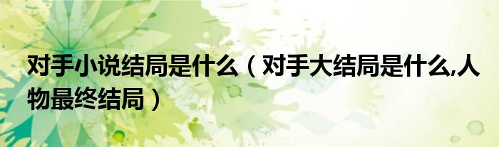 大家好,綜合小編來為大家解答以上問題。對手小說結局是什么,對手大結局是什么,人物最終結局很多人還不知道,現在讓我們一起來看看吧!