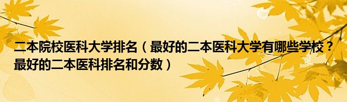 大家好,綜合小編來為大家解答以上問題。二本院校醫科大學排名,最好的二本醫科大學有哪些學校?最好的二本醫科排名和分數很多人還不知道,現在讓我們一起來看看吧!