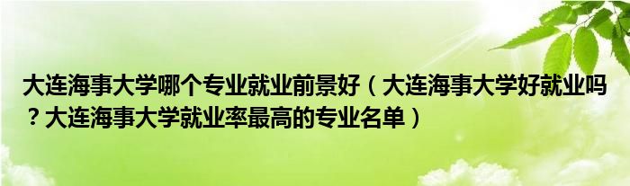 回答:大連海事大學很好就業。