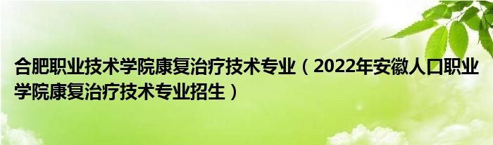 大家好,綜合小編來(lái)為大家解答以上問(wèn)題。合肥職業(yè)技術(shù)學(xué)院康復(fù)治療技術(shù)專業(yè),2022年安徽人口職業(yè)學(xué)院康復(fù)治療技術(shù)專業(yè)招生很多人還不知道,現(xiàn)在讓我們一起來(lái)看看吧!