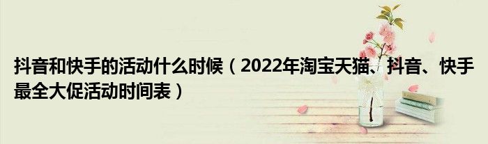 大家好,綜合小編來(lái)為大家解答以上問(wèn)題。抖音和快手的活動(dòng)什么時(shí)候,2022年淘寶天貓、抖音、快手最全大促活動(dòng)時(shí)間表很多人還不知道,現(xiàn)在讓我們一起來(lái)看看吧!