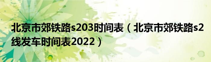 大家好,綜合小編來為大家解答以上問題。北京市郊鐵路s203時間表,北京市郊鐵路s2線發車時間表2022很多人還不知道,現在讓我們一起來看看吧!