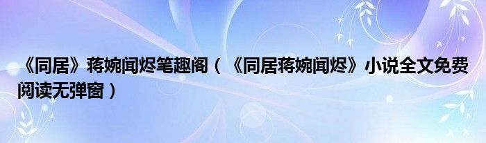 大家好,綜合小編來為大家解答以上問題。《同居》蔣婉聞燼筆趣閣,《同居蔣婉聞燼》小說全文免費閱讀無彈窗很多人還不知道,現在讓我們一起來看看吧!