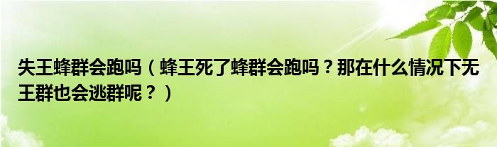 大家好,綜合小編來為大家解答以上問題。失王蜂群會跑嗎,蜂王死了蜂群會跑嗎?那在什么情況下無王群也會逃群呢?很多人還不知道,現(xiàn)在讓我們一起來看看吧!