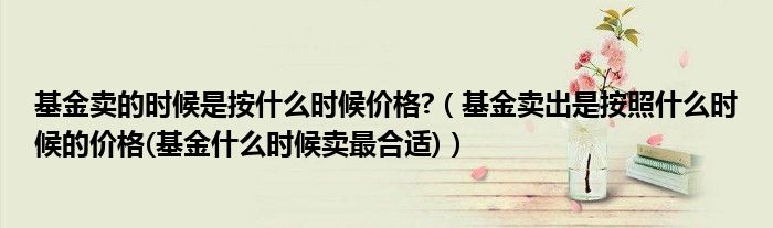 那么,基金的賣價指的是什么時候?讓我們一起來了解一下。