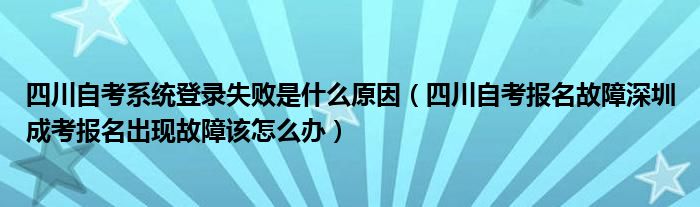 大家好,綜合小編來為大家解答以上問題。四川自考系統登錄失敗是什么原因,四川自考報名故障深圳成考報名出現故障該怎么辦很多人還不知道,現在讓我們一起來看看吧!