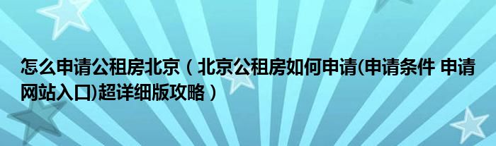 》》北京如何申請公租房?收好這份超詳細申請攻略