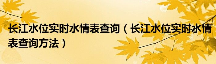 大家好,綜合小編來(lái)為大家解答以上問(wèn)題。長(zhǎng)江水位實(shí)時(shí)水情表查詢,長(zhǎng)江水位實(shí)時(shí)水情表查詢方法很多人還不知道,現(xiàn)在讓我們一起來(lái)看看吧!