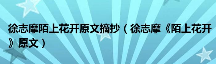 大家好,綜合小編來為大家解答以上問題。徐志摩陌上花開原文摘抄,徐志摩《陌上花開》原文很多人還不知道,現在讓我們一起來看看吧!
