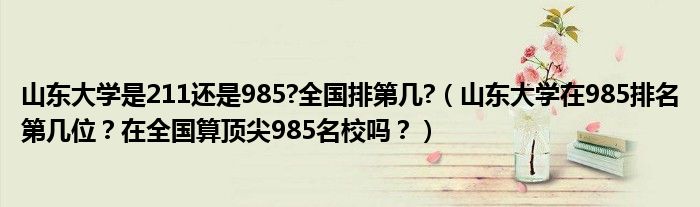 大家好,綜合小編來為大家解答以上問題。山東大學是211還是985?全國排第幾?,山東大學在985排名第幾位?在全國算頂尖985名校嗎?很多人還不知道,現在讓我們一起來看看吧!