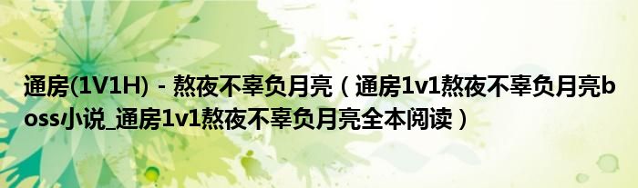 大家好,綜合小編來為大家解答以上問題。通房(1V1H) - 熬夜不辜負月亮,通房1v1熬夜不辜負月亮boss小說_通房1v1熬夜不辜負月亮全本閱讀很多人還不知道,現在讓我們一起來看看吧!