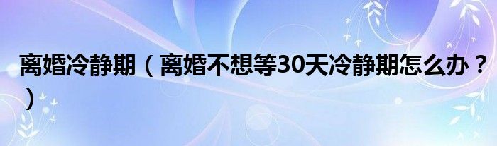 大家好,綜合小編來為大家解答以上問題。離婚冷靜期,離婚不想等30天冷靜期怎么辦?很多人還不知道,現在讓我們一起來看看吧!