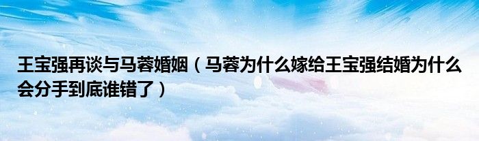 大家好,綜合小編來為大家解答以上問題。王寶強再談與馬蓉婚姻,馬蓉為什么嫁給王寶強結婚為什么會分手到底誰錯了很多人還不知道,現在讓我們一起來看看吧!