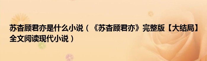 大家好,綜合小編來為大家解答以上問題。蘇杳顧君亦是什么小說,《蘇杳顧君亦》完整版【大結局】全文閱讀現代小說很多人還不知道,現在讓我們一起來看看吧!